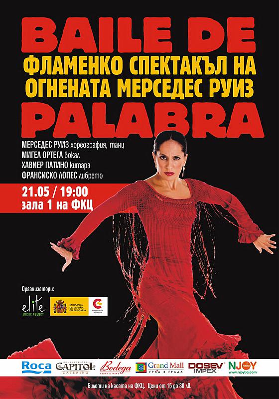 Рока България отново партнира на посолството на Испания у нас за представянето на испанската култура със спектакъла Baile de palabra на Огнената Мерседес Руиз, организиран от Елит Мюзик във Варна. Нова доза испанска страст ще залее зала 1 на ФКЦ във Варна на 21 май т.г. с фламенко спектакъла Baile de palabra на танцьорката Мерседес Руиз, наричана Огнената.
