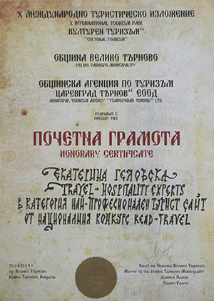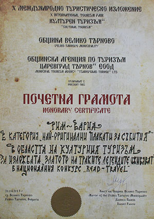 ГОЛЯМАТА НАГРАДА НА ЖУРИТО ЗА НАЙ-ОРИГИНАЛНО СЪБИТИЕ В ОБЛАСТТА НА КУЛТУРНИЯ ТУРИЗЪМ ЗА 2012 Г.