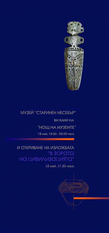 Изложбата, озаглавена „В ЗОРАТА НА ЦИВИЛИЗАЦИЯТА (праисторически култури в региона на Несебър)”, представя праисторически материали от фонда на Музей „Старинен Несебър”. Те произхождат от различни селищни могили, разположени в района на гр. Несебър и най-вече по плодородната долина на река Хаджийка. Най-многобройни в изложбата са материалите от т.н. Козарева могила, разположена в близост до гр. Каблешково. Тя е и единствената селищна могила в района, която е проучвана с редовни археологически разкопки.