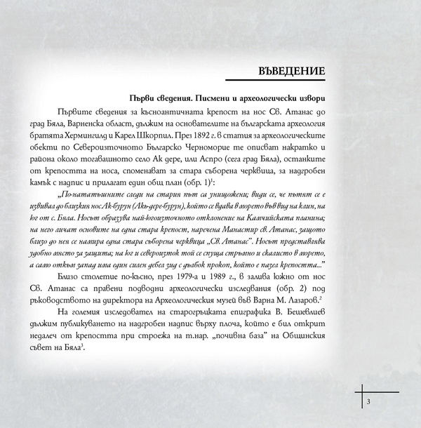 Тази книга е създадена в рамките на проект „Консервация, реставрация, експониране и социализация на антично селище и късноантична крепост на нос Св. Атанас и превръщането им във водеща туристическа атракция на територията на Община Бяла, обл. Варна“ финансиран по ОП „Регионално развитие“ 2007 – 2013 г.
