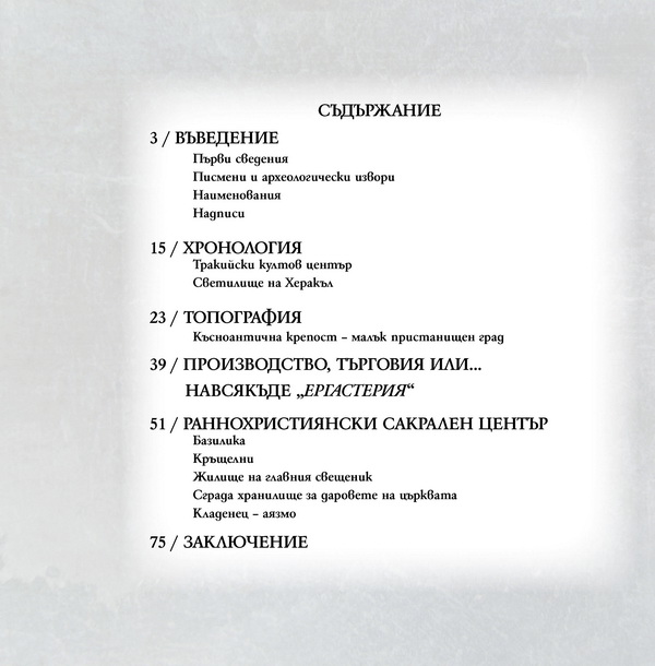 Книгата отлично описва Късноантичния комплекс на нос Св. Атанас в гр. Бяла, както и най-значимите открития по време на археологическите проучвания. Автори на изданието са доц. д-р Валери Йотов и д-р Александър Минчев.
