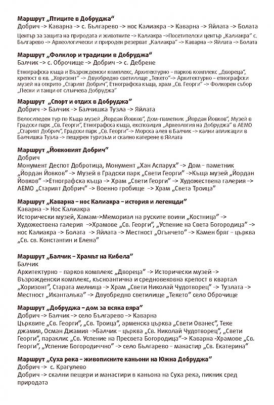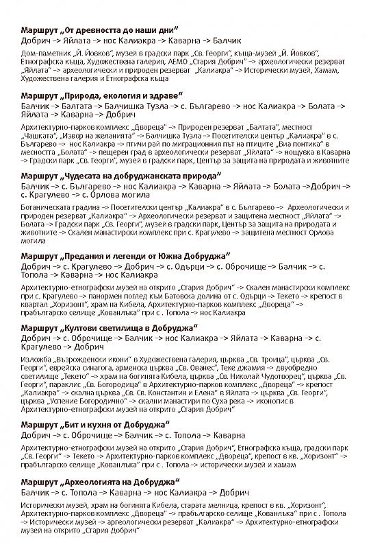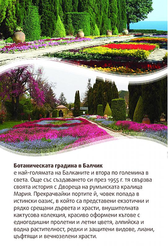 В Двореца на румънската кралица Мария в Балчик ще долови полъха на една необикновена любов, създала свят на красота и хармония. Ще поиска да се докосне до чудесата на молитвения дом на Ак Язълъ баба и св. Атанас (Текето) в село Оброчище, както и до тайнството на живота в Балчик, където се намира един от малкото запазени в света храмове на Богинята майка – Кибела, наричан археологическото откритие на нашия век. Ще научи за живота на хората, населявали някога тези земи, за възхода и залеза на държави, селища и крепости и тайните, които и до днес пази Черно море.