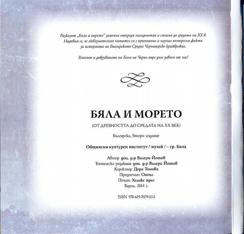 Книгата е издадена през 2014 г.от Общински културен институт (музей) гр. Бяла по проект осъществен с подкрепата на Оперативна програма за развитие на сектор „Рибарство“, съфинансиран от Европейския съюз.