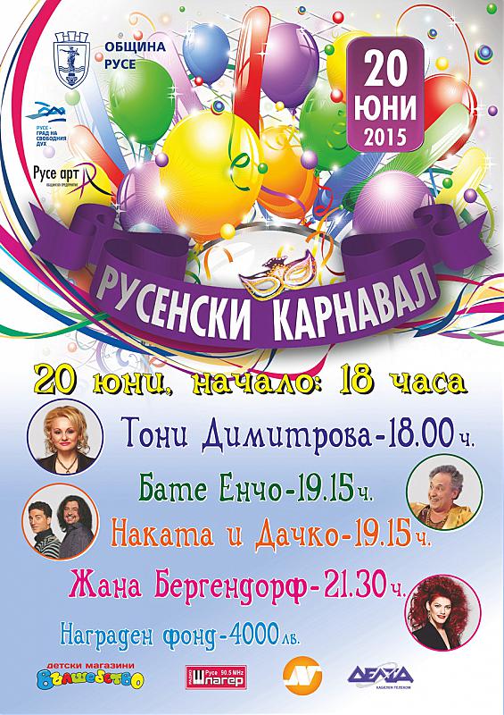 Традиционният Русенски карнавал е най-пъстрото събитие в културния календар на гр. Русе. На 20 юни 2015 г. творчески групи, състави, клубове, колективи, както и самостоятелни участници взеха участие в мащабната инициатива.