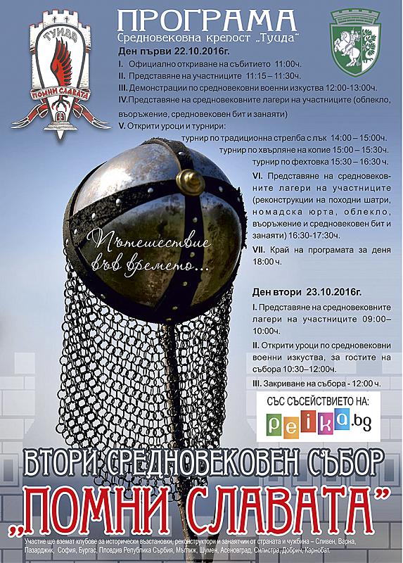 На 22-23 октомври 2016г. се проведе Втори средновековен събор „Помни славата”, по случай празникът на град Сливен – Димитровден. Събитието се организира съвместно от екипът на крепост „Туида”, Община Сливен и Сдружение „Клуб за традиционни военни изкуства Ратина“.