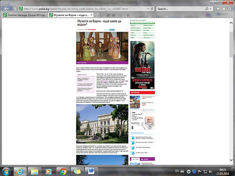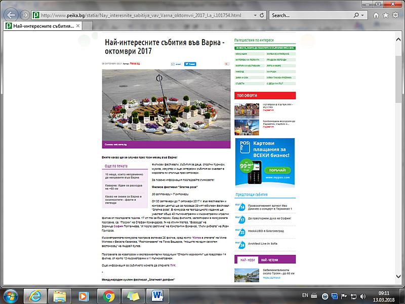 МЕСЕЦ НА ВАРНА - ОКТОМВРИ 2017 Г.: СЕРИЯ ПУБЛИКАЦИИ В ТУРИСТИЧЕСКИ ИНТЕРНЕТ САЙТ WWW.PEIKA.BG