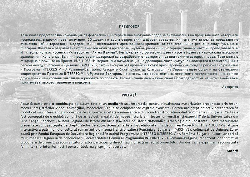СПЕЦИАЛИЗИРАНА ИНТЕРАКТИВНА КНИГА „ДРЕВНОРИМСКИ КРЕПОСТИ ОТ ТРАНСГРАНИЧНИЯ РЕГИОН МЕЖДУ БЪЛГАРИЯ И РУМЪНИЯ“