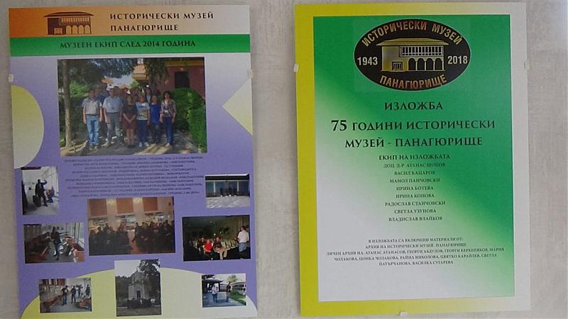 През 2018 г. се навършиха 75 години от създаването на Исторически музей – Панагюрище.По повод юбилея Исторически музей – Панагюрище създаде изложба, в която загатваме за всички епохи в развитието на институцията. Изложбата съдържа 41 табла, в които е събрана историята на панагюрския музей. С веществени материали – документи и награди представяме създаването, развитието и постиженията на музейната институция през годините.