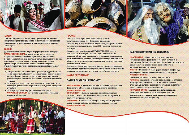 Дългосрочната ни визия е чрез информационната платформаWWW.FEST-BG.COMда дадем пълна и изчерпателна информация за фестивалите и празниците в България – по дати, местоположение, програма, организация, така че да сме максимално полезни на всички заинтересовани страни - организатори на фестивали, общински администрации, туроператори, туристическия бранш и широка общественост.
