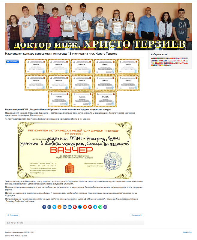 2020: Онлайн конкурс „Спомен за бъдещето – послание до моето Аз“
