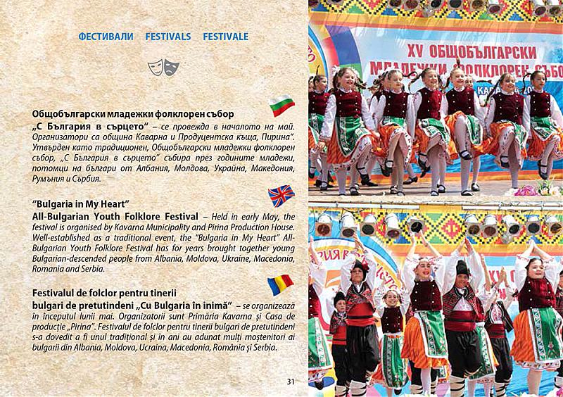 Каварна е известна и с богатия си Културен календар, който включва много традиционни фестивали, добили голяма популярност – Общобългарски младежки фолклорен фестивал „С България в сърцето“, Национален фестивал на любителските Театри , фестивал „Джаз на село“‚ в с. Камен бряг, Миден и рибен фест, Празници на морето, Рок фестивал „Българево Рок“. Всички те са описани в последната част на пътеводителя.