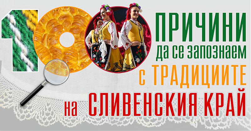 „100 причини да посетите и опознаете традициите на Сливенския край“ е раздел намиращ се в туристическият портал на Сливен https://infotourism.sliven.bg, където всеки може да се запознае с карти на региона, представящи различни традиции и природни богатства, производства и обредни обичаи. Платформата предлага едно пътешествие из ръкоделието и кухнята на сливналиите от миналото до днес.