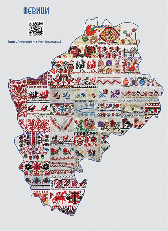 Следващите карти изобразяват шевиците, черги и килими, вадени престилки, кулинарни традиции, обредни хлябове и пътеводител на винопроизводителите в Сливенско. Последната карта включва природните забележителности, места за отдих и исторически местности.