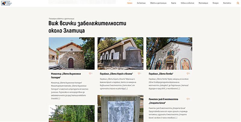 В него са описани всички исторически, културни и природни обекти, които се намират на територията на Община Златица, заедно със снимков материал и кратко описание. Информацията на сайта дава възможност да се проверят възможностите за нощувка, места за хранене, туристически и еко пътеки, за спорт и забавление, за култура и изкуство.