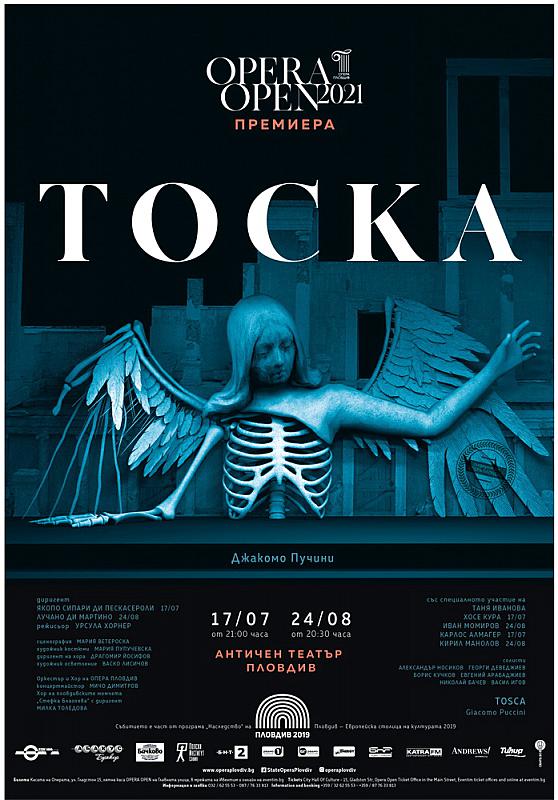 17.07 – „Тоска” на Пучини – премиера на Античен театър. Диригент: Якопо Сипари Ди Пескасероли (Италия); Режисьор: Урсула Хорнер (Австрия); Солисти, Оркестър, Хор и Балет на Опера Пловдив; Хор на пловдивските момчета „Стефка Благоева” с диригент Милка Толедова.