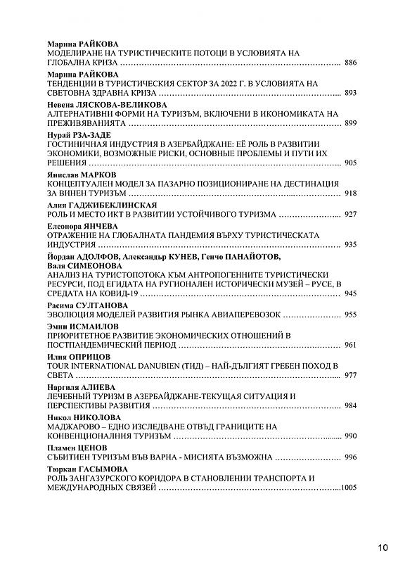 СБОРНИК С ДОКЛАДИ ОТ МЕЖДУНАРОДНА НАУЧНА КОНФЕРЕНЦИЯ „СЪВРЕМЕННИ ПРЕДИЗВИКАТЕЛСТВА ПРЕД ТУРИЗМА“