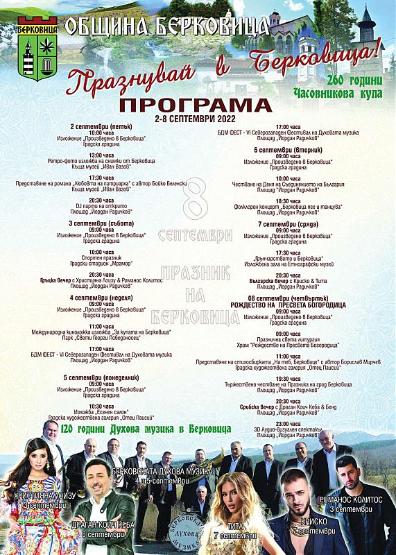 С 3D аудиовизуален спектакъл бе отбелязана 260-годишнината от построяването на Часовниковата кула в Берковица. С впечатляващи кадри от стара и съвременна Берковица бе представено миналото и настоящето, отминалите, но незабравени времена от историята на града под Ком.
