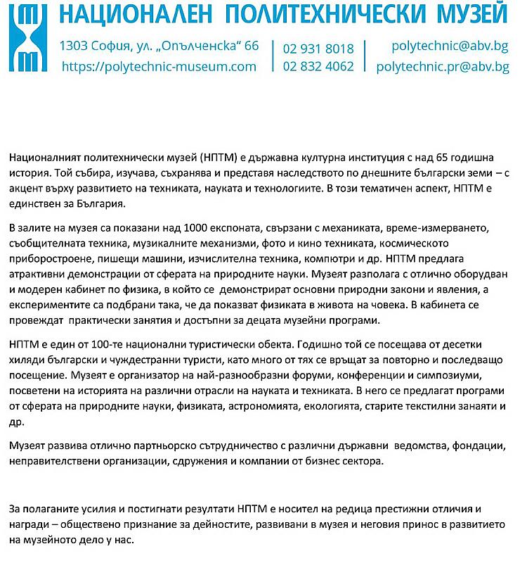 НАЦИОНАЛЕН ПОЛИТЕХНИЧЕСКИ МУЗЕЙ (НПТМ)