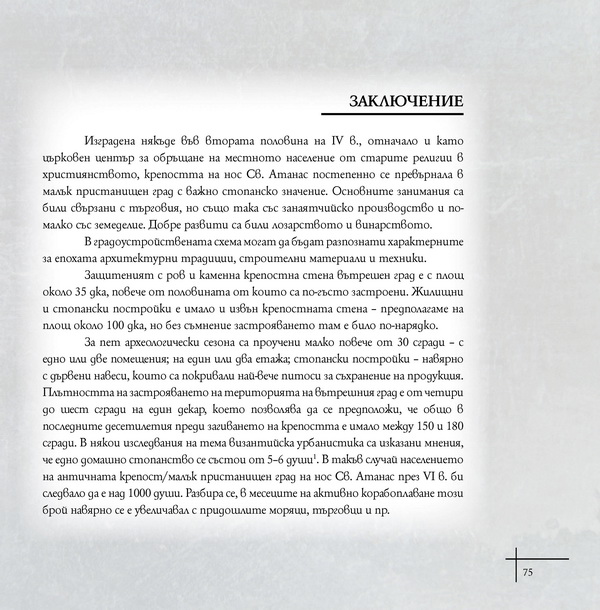Книгата отлично описва Късноантичния комплекс на нос Св. Атанас в гр. Бяла, както и най-значимите открития по време на археологическите проучвания. Автори на изданието са доц. д-р Валери Йотов и д-р Александър Минчев.