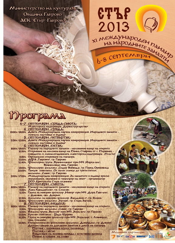 Плакат на Международния панаир на народните занаяти, който ежегодно се провежда на територията на АЕК „Етър“ под егидата на Министерството на културата и Община Габрово.