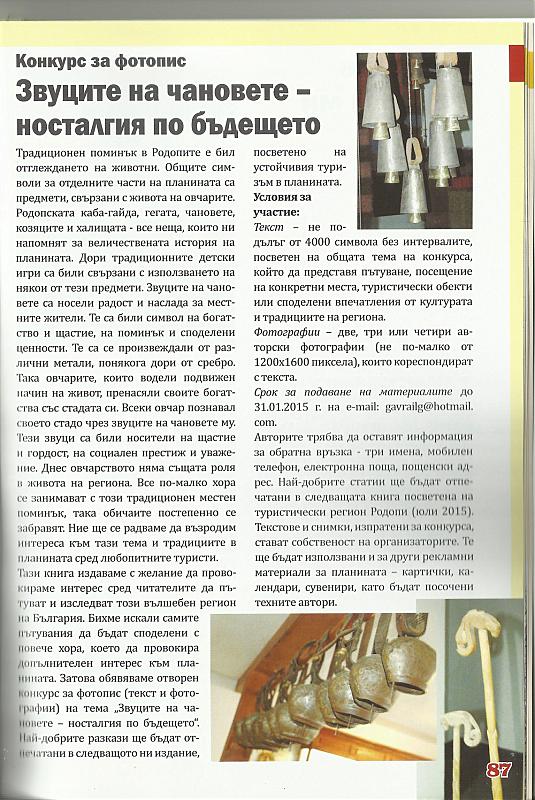 Има и още много полезна информация за новите туристически атракции с финансиране от ЕС, обекти за настаняване и насоки как да прекараме пълноценно времето си със старите родопски детски игри. Накрая има кратък родопско-български речник. Всичко е гарнирано с над 200 великолепни авторски фотографии. Книгата е отпечатана в три отделни тиража на български, руски и английски език. Продава се свободно в книжарската мрежа на страната.