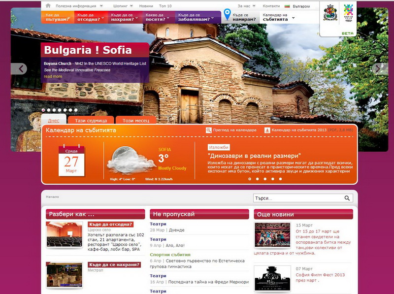 Официален туристически сайт на Столична община с уникални елементи в сайта: