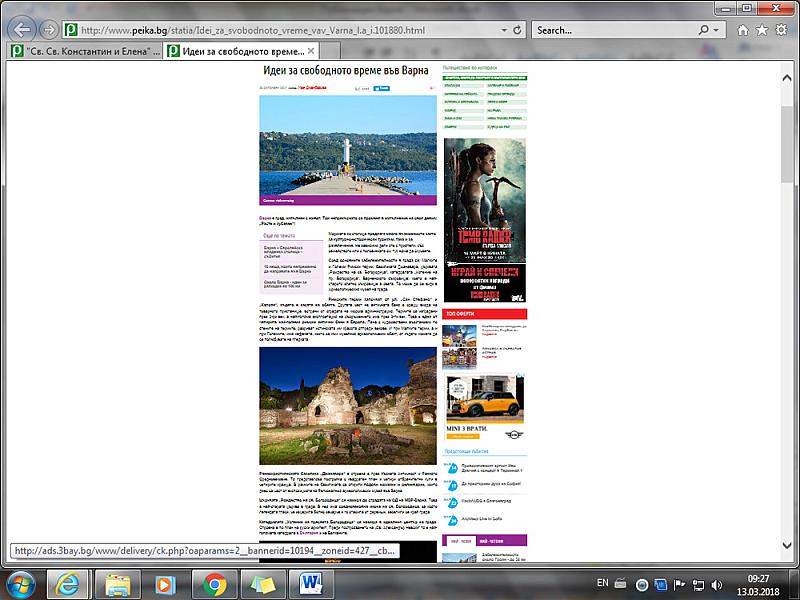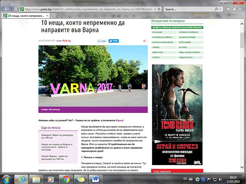 МЕСЕЦ НА ВАРНА - ОКТОМВРИ 2017 Г.: СЕРИЯ ПУБЛИКАЦИИ В ТУРИСТИЧЕСКИ ИНТЕРНЕТ САЙТ WWW.PEIKA.BG