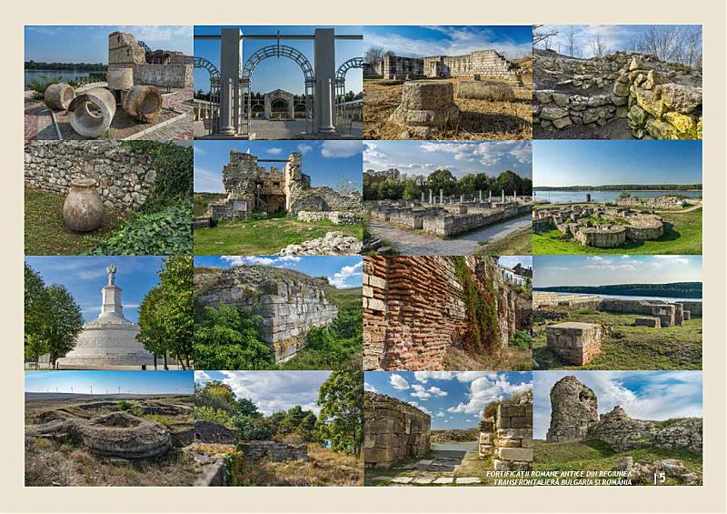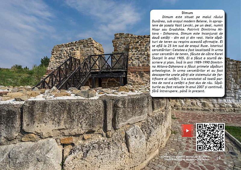 Специализираната интерактивна книга „Древноримски крепости от трансграничния регион между България и Румъния“, съдържа снимки и текстова информация за 16 Римски крепости от трансграничния регион между България и Румъния. Тези крепости са Димум (Белене), Нове (Свищов), Ятрус (с. Кривина), Тримамиум (с. Мечка), Червен, Сексагинта Приста (Русе), Абритус (Разград), Дуросторум (Силистра), Тропеум Траяни (Адамклиши, Румъния), Сачидава (Румъния), Капидава (Румъния), Карсиум (Хърсово, Румъния), Улметум (Пантейлемон, Румъния), Хистрия (Румъния), Томис (Констанца, Румъния) и Калатис (Мангалия, Румъния). Книгата е с обем от 104 страници.