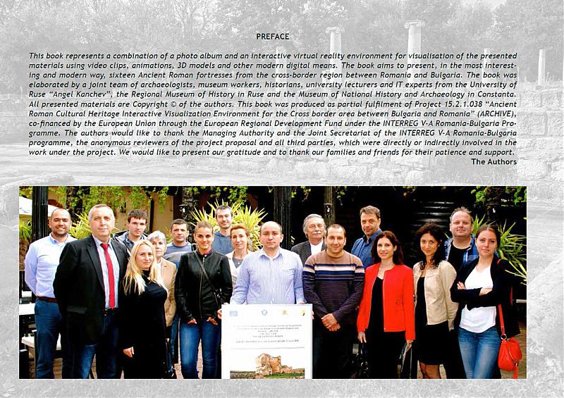 Интерактивната книга „Древноримски крепости от трансграничния регион между България и Румъния“ е реализирана съвместно от Русенски университет „Ангел Кънчев“, Регионален исторически музей – Русе и Музей за национална история и археология (Констанца).