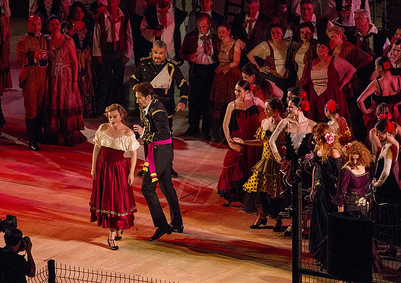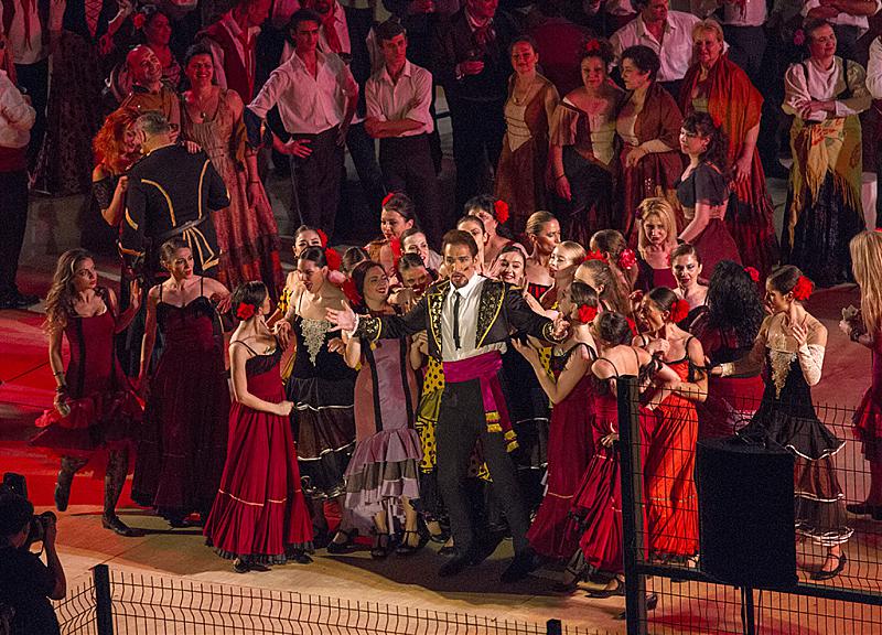 Бляскавата и жизнерадостна музика, огнени ритми, разтърсващата драма за свободата, за любовта и изневярата, за готовността за саможертва, съчетани в едно, са голямо предизвикателство за всеки, който посегне към нов прочит на музиката на Бизе и неговата опера „Кармен”. На 6 юли зрителите се срещат с една класическа „Кармен”, в която изобилстват атрактивни и зрелищни решения, към които предразполага самото заглавие и сцената на открито. Моделите на костюмите са подарък за световното мецосопрано от италианския художник Салваторе Русо.