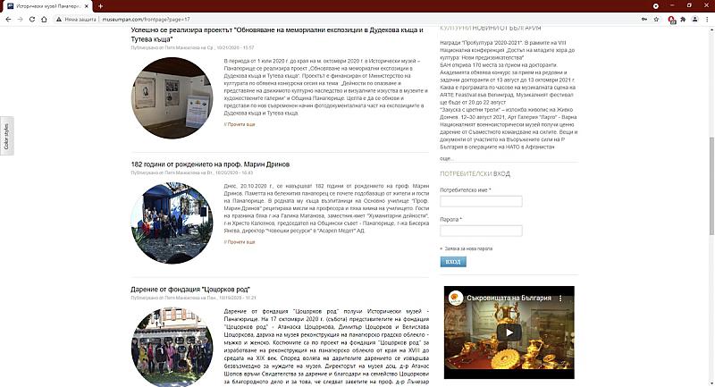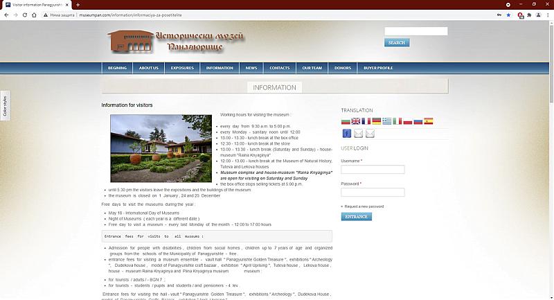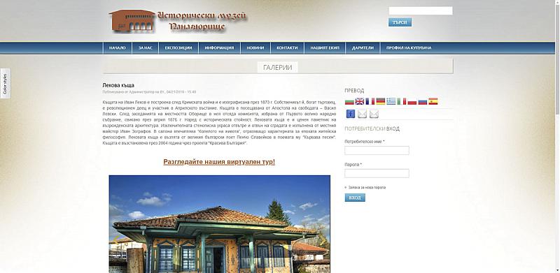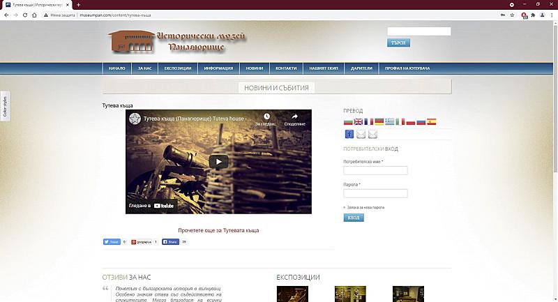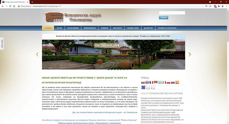 На уебсайта са показани, както историята на Панагюрския край, така и информация за актуалните събития. Тя е структурирана спрямо тематиката на музея в отделни панели, свързани логически помежду си. Чрез снимки, текст, виртуална разходка и видео той е представен по най-добрия начин, с което да бъдат привличани гости на музейната институция и общината, потенциални партньори и служители. С определянето на ключови думи и фрази за SEOоптимизация на сайта постигаме популярност в интернет пространството. Актуалната информация и навременното отразяване на събитията спомага за допълнителното промотиране на дейността ни.