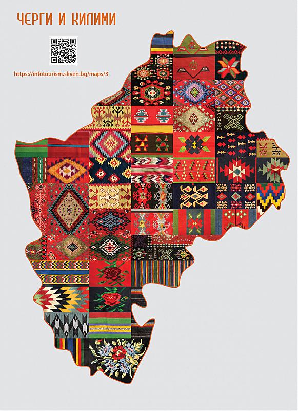 Следващите карти изобразяват шевиците, черги и килими, вадени престилки, кулинарни традиции, обредни хлябове и пътеводител на винопроизводителите в Сливенско. Последната карта включва природните забележителности, места за отдих и исторически местности.