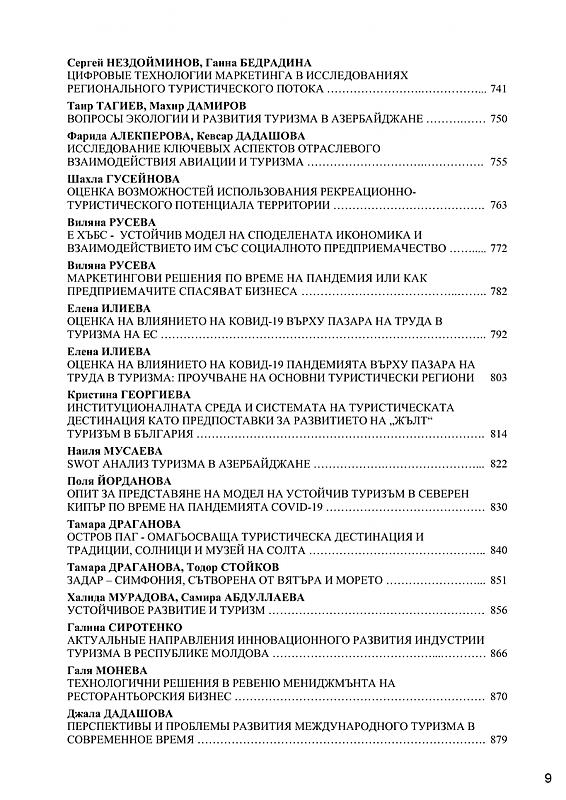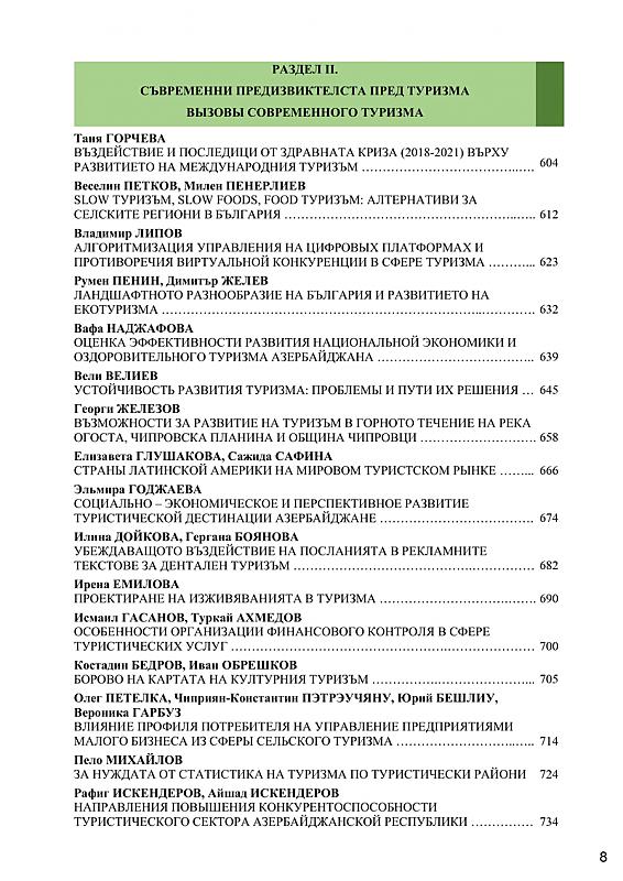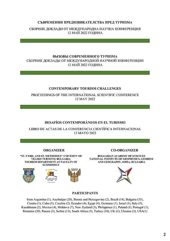 СБОРНИК С ДОКЛАДИ ОТ МЕЖДУНАРОДНА НАУЧНА КОНФЕРЕНЦИЯ „СЪВРЕМЕННИ ПРЕДИЗВИКАТЕЛСТВА ПРЕД ТУРИЗМА“